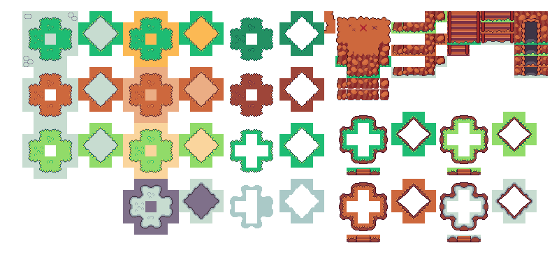 It is a 16x16 pixel exterior tilesets. This asset pack always stays be free. This asset pack is part of the Cozyland asset series. Includes 2900+ tiles, trees, 4 season tilesets (grass, tree and other stuff), beach tiles, camp and more. The characters in photos are from Cozyland - Character sprites